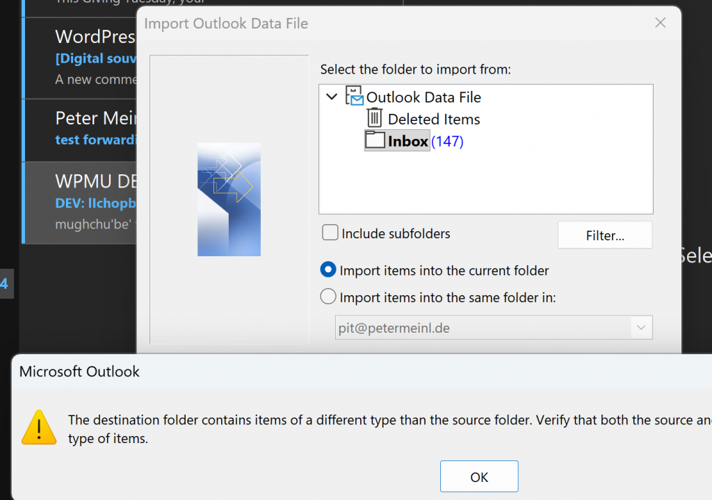 Outlook Archiv PST nach Thunderbird und EU-Provider kopieren
